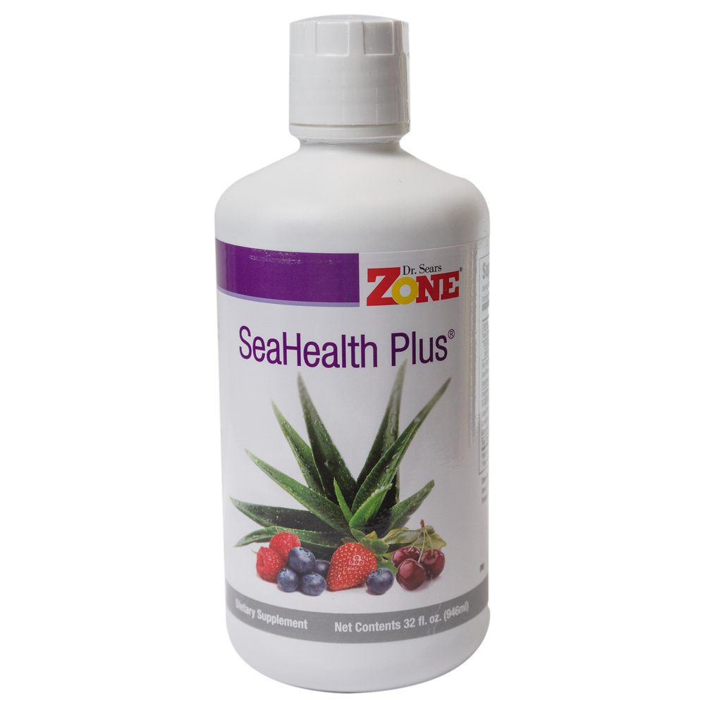 SeaHealth Plus is a natural liquid supplement combining fruits, sea vegetables, and Aloe Vera with a black cherry flavor, offering the antioxidant power of five servings of fruits and vegetables.